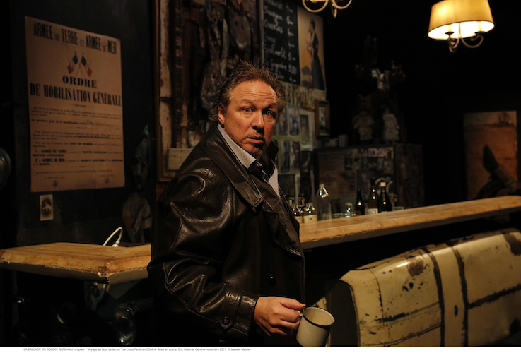 Il revient sur des sentiers qui ne sont pas ceux de la gloire. Armé de ses seuls souvenirs, le soldat Bardamu évoque ses « hauts » faits d’arme pour mieux dénoncer l’absurdité de la guerre. Frédéric Polier se glisse sous la capote du protagoniste de Voyage au bout de la nuit et vous entraîne là où l’homme se perd.