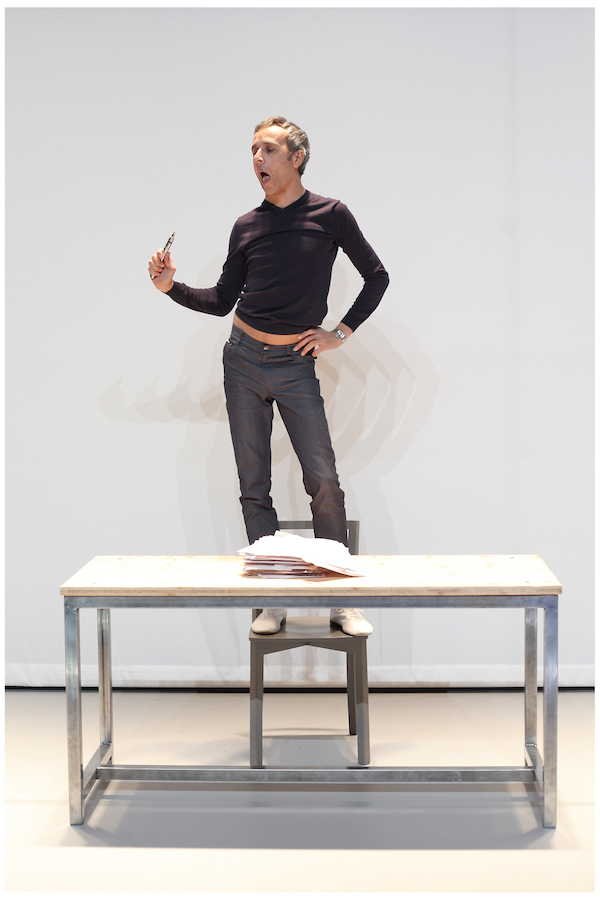 Julien Mages aime les mots. Il croit au pouvoir de la rhétorique et s'accorde volontiers des respirations poétiques. En outre, le rire – dont on connaît les propriétés cathartiques - ne l'effraie pas. En toute logique, rien d'étonnant à ce qu'il se soit inspiré du Misanthrope pour composer sa rhapsodie. C'est en effet à une variation libre et fantaisiste de la comédie de Molière à laquelle il se livre, dans une langue tour-à-tour savante et populaire. Janine s'est fendu d'un article virulent à l'égard de la prose socio-philosophique d'un entrepreneur. Ce dernier en conçoit une légitime amertume. S'engage alors une joute verbale entre les deux protagonistes, combat de la posture contre la pensée Vraie. Las, dans un monde où le simulacre tient lieu de règle de savoir-vivre, la vérité est sommée de se voiler. Diffamée et outragée, lâchée par les siens, Janine devra se résoudre à quitter la scène pour se confronter à ses propres démons. Un galvanisant jeu de l'égo au terme duquel la pièce la plus fragile se brise.